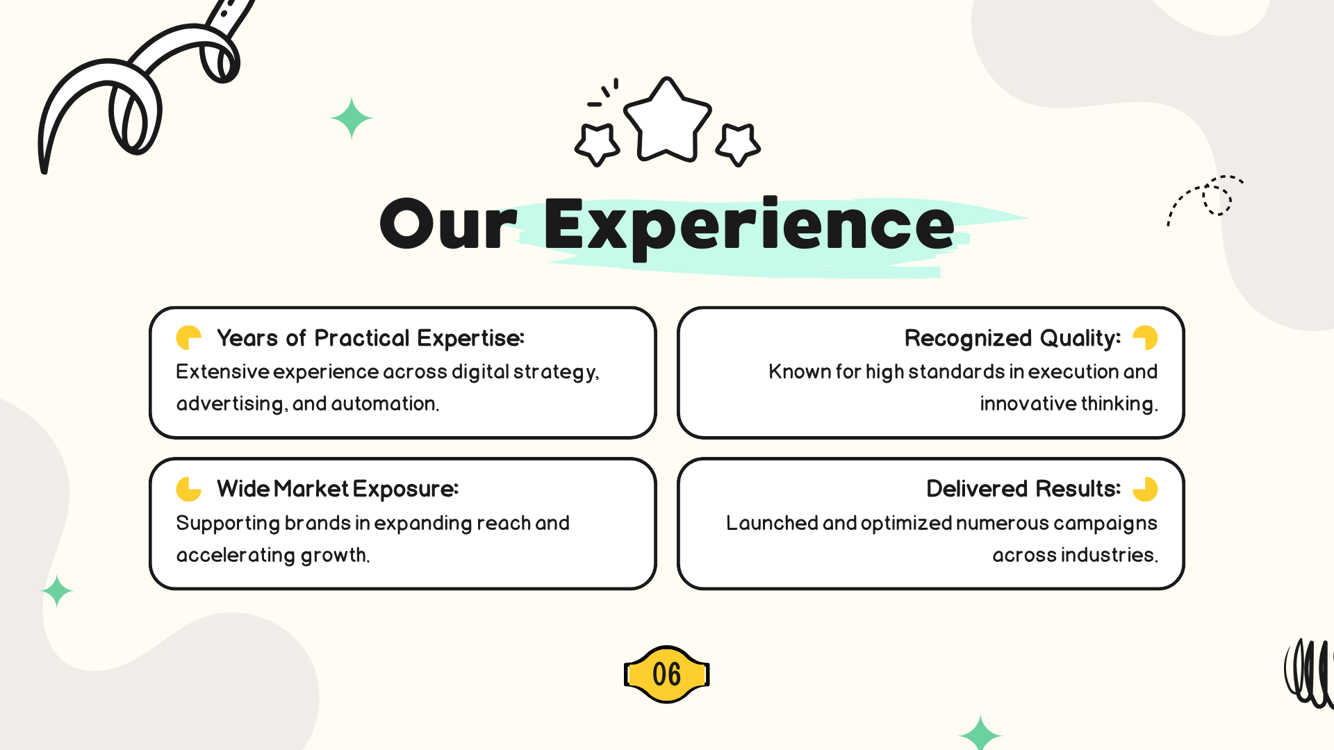 While AI and automation handle the heavy lifting, our expert team ensures every strategy aligns with your business goals. We combine cutting-edge technology with deep industry knowledge to create solutions that are both innovative and practical.